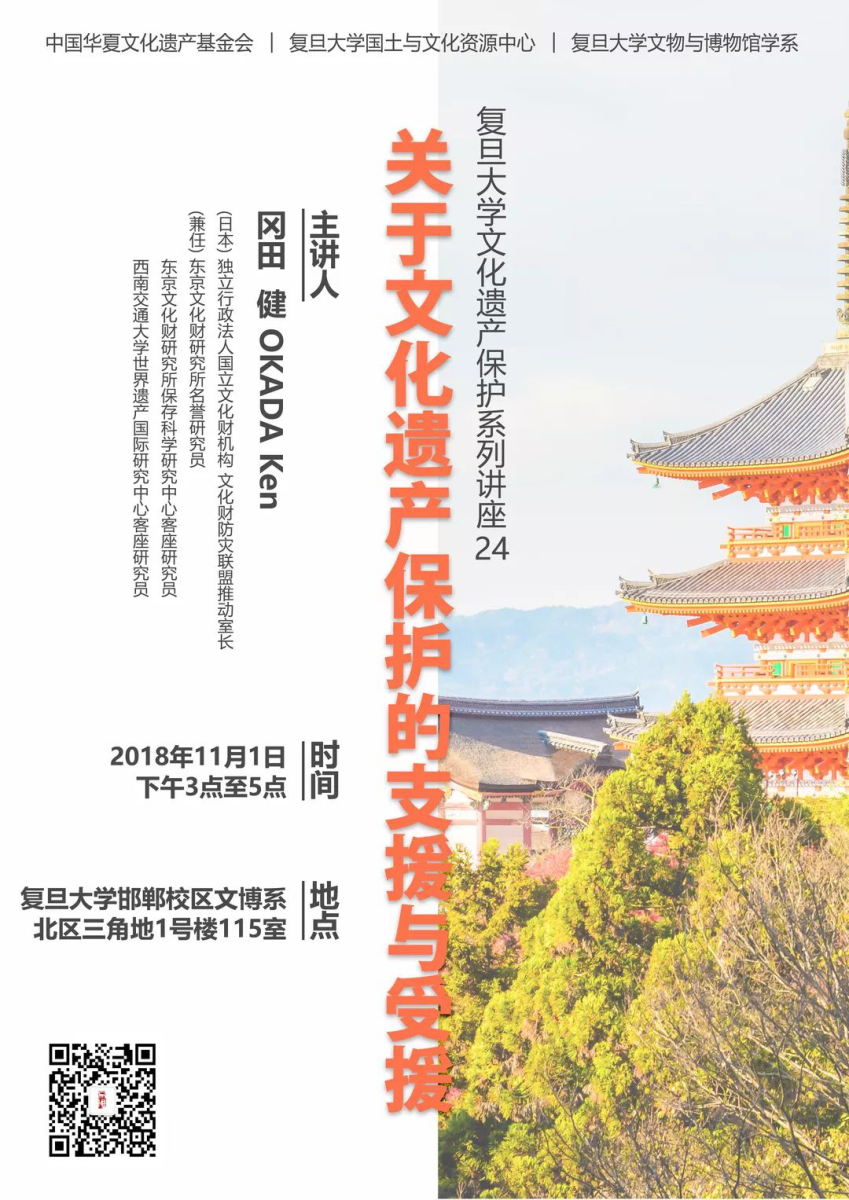 2018年11月1日下午,日本文化财防灾联盟促进办公室主任冈田健先生应复旦大学国土与文化资源研究中心之邀,为复旦师生们带来了一场题为《关于文化遗产保护的支援与受援》的精彩讲座。